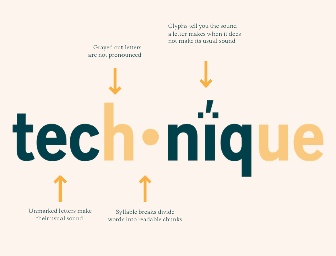 We built our markup system using diacritical marks because we wanted a way to make the invisible rules of English visible to every student. The same kind of accent and pronunciation guides that are used in dozens of other languages like French, Arabic or Vietnamese. For many ML students, this isn't foreign at all. It's familiar. Several Norwich Public School (CT) students, upon first seeing the glyphs, reportedly said: "Oh yeah, I've seen something like this before."