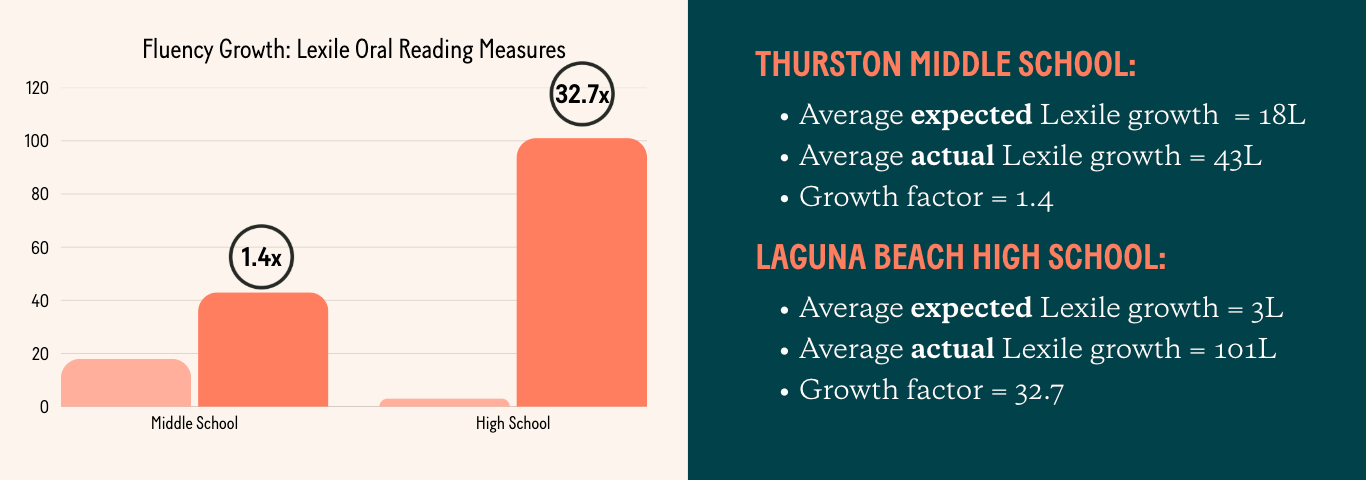 After implementing through the school year with both elementary and secondary students, the Lexile oral reading fluency data arrived: